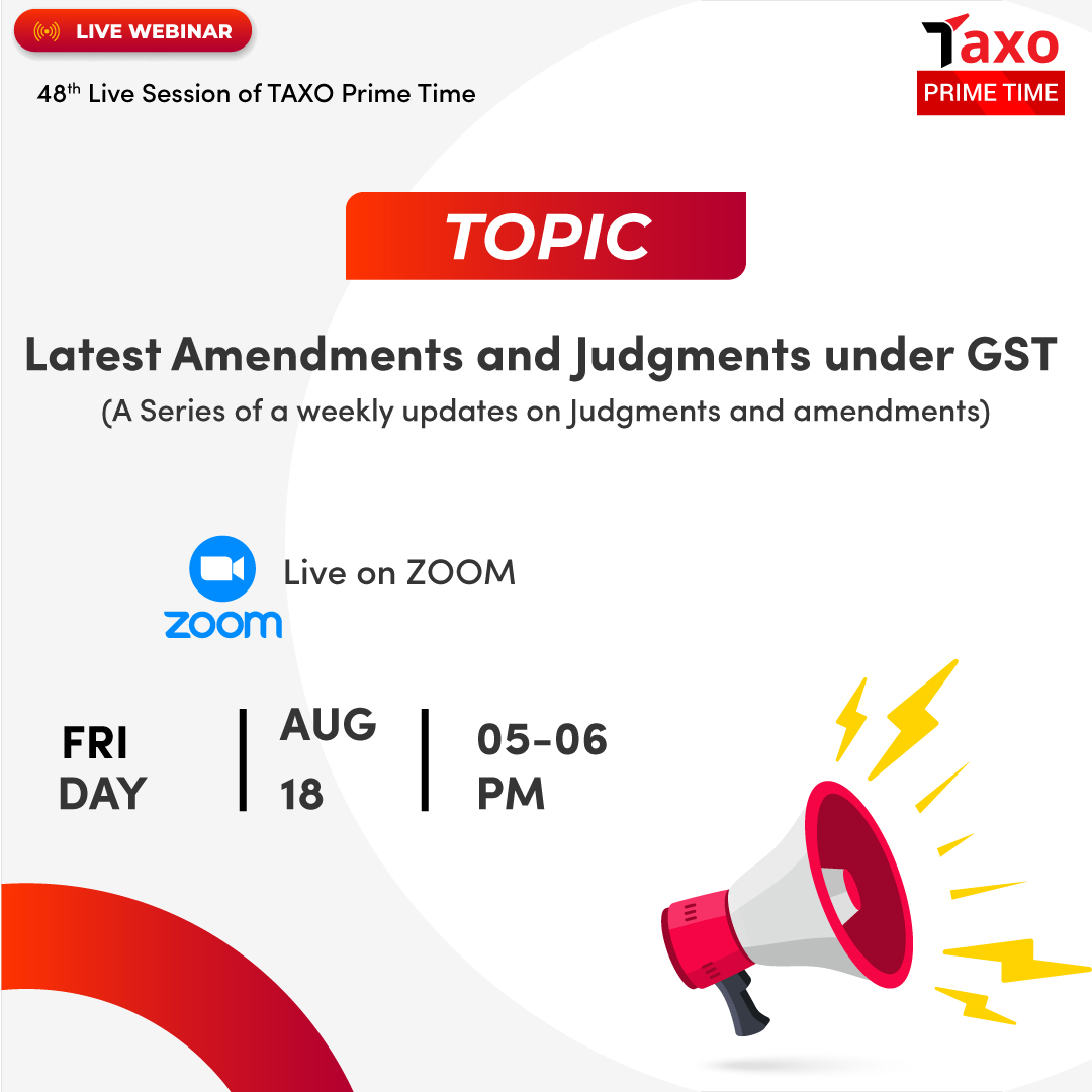 Topics will cover are Latest judgments Under GST, Latest Notification, Circular Under GST, Latest Advance Rulings Under GST